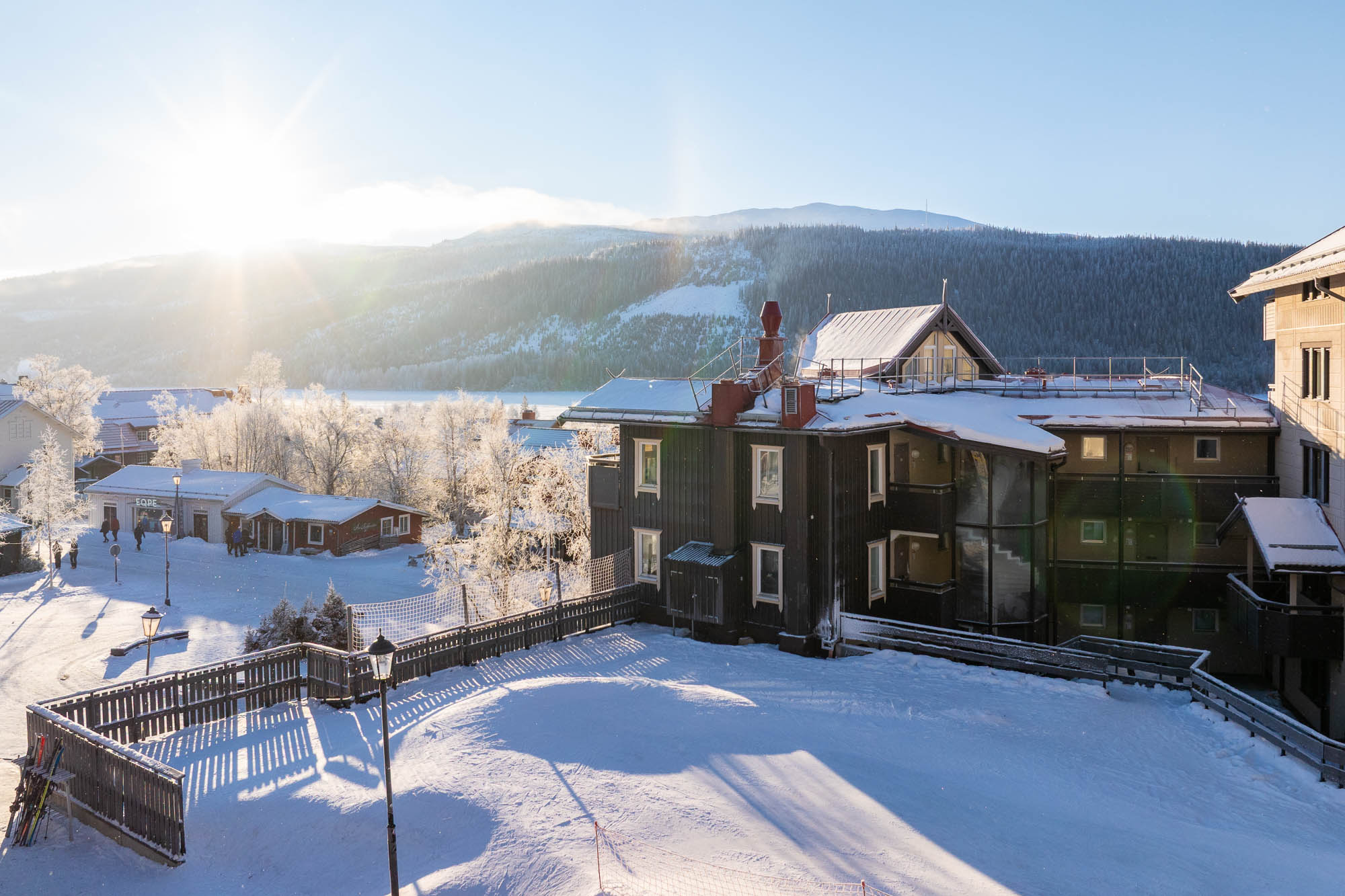 Boende i unik hörnlägenhet på 61 kvm med utsikt över både Åre Torg och skidbacke, ovanför Hansson Concept Store och Max – du bor mitt på Åre Torg och kan åka skidor fram till dörren. Från entrén är det bara 50 meter till den gamla skidliften Åre Bergbana.